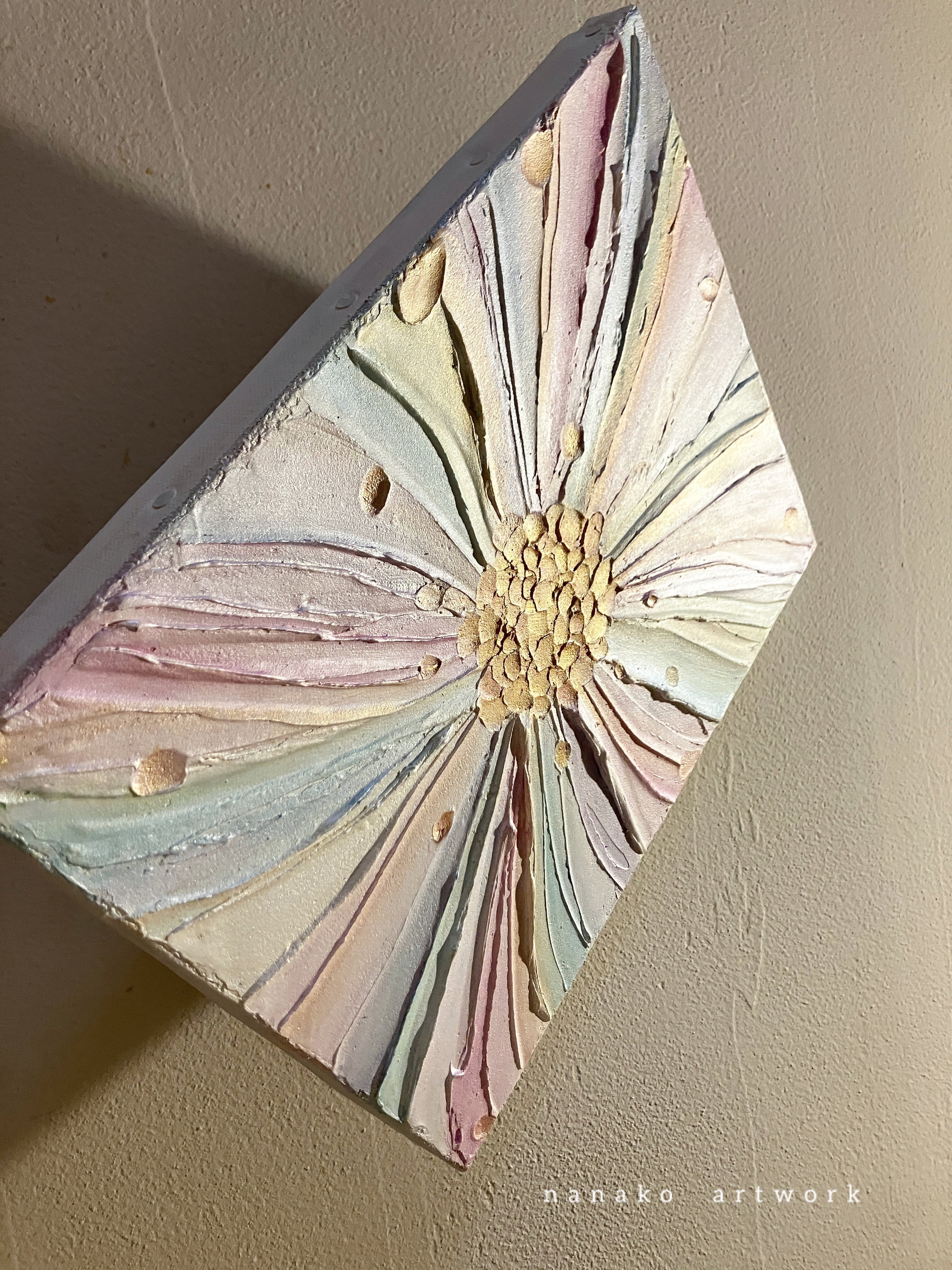画鋲ピンで壁に引っ掛けて飾っていただくことも可能です。吊り紐もお付けいたします。